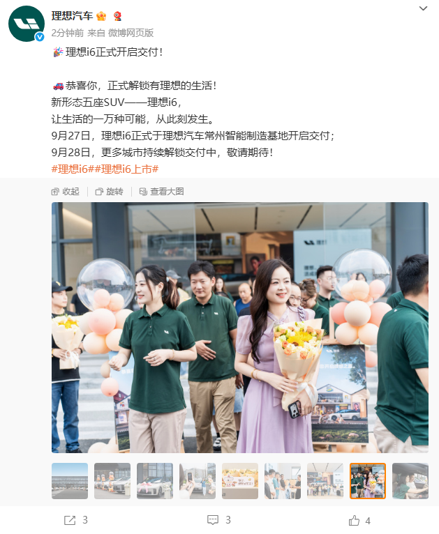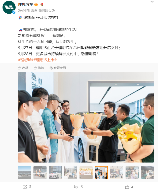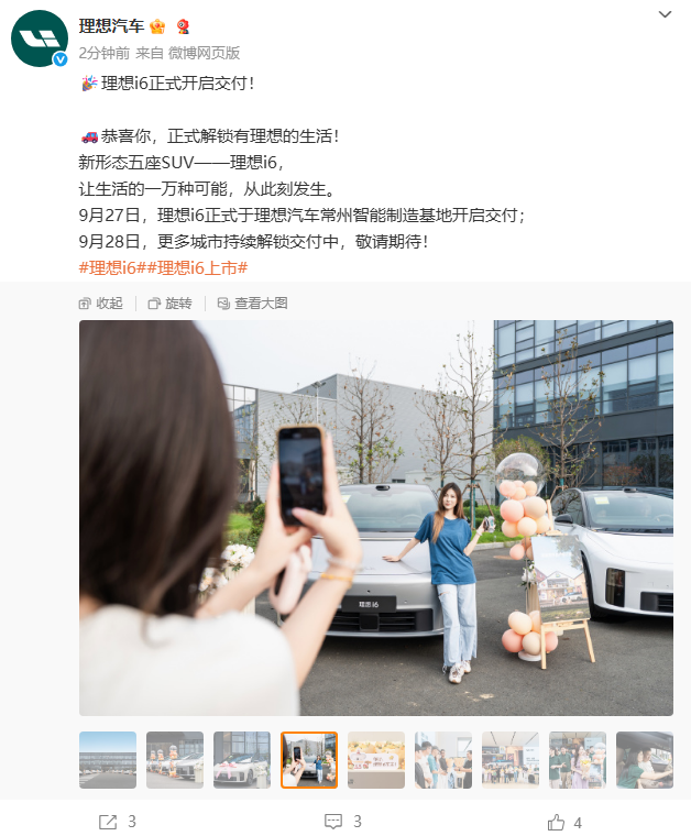 IT之家 9 月 27 日消息,理想汽车宣布,“新形态五座 SUV”理想 i6 正式于理想汽车常州智能制造基地开启交付,官方指导价 24.98 万元起。